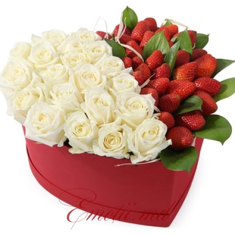 Inima cu Trandafiri Albi si Capsuni