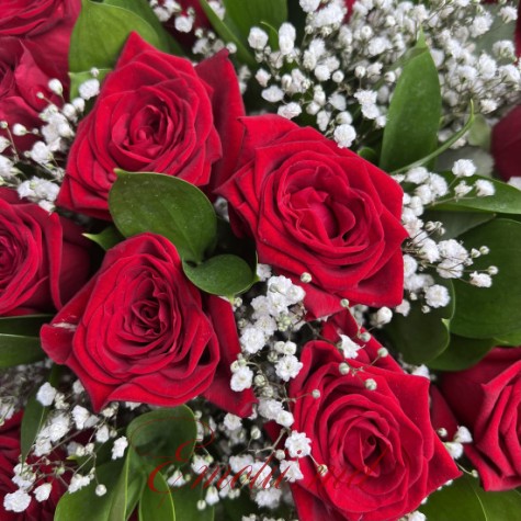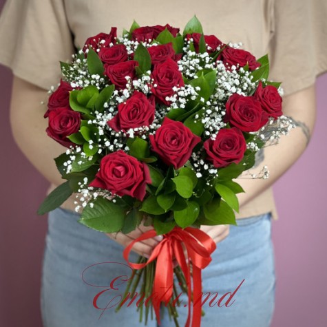 Buchet 17 Trandafiri Rosii si Gypsophila