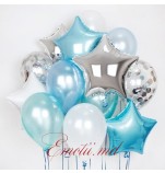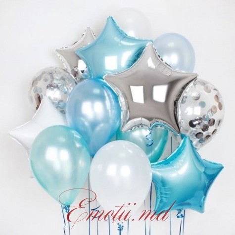2 blue foil star balloons,