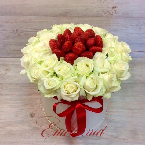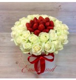 Cutie cu 35 Trandafiri Albi si Capsuni.