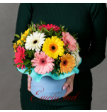 Стандарт: 11 Разноцветных Гербер, Декор, Коробка.