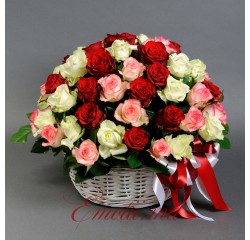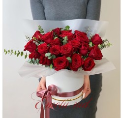 Deluxe - 25 Trandafiri Albi, coș, elemente de decor.