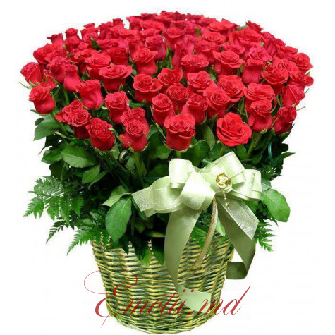 Deluxe - 31 Trandafiri, coș, verdeață, elemente de decor.
